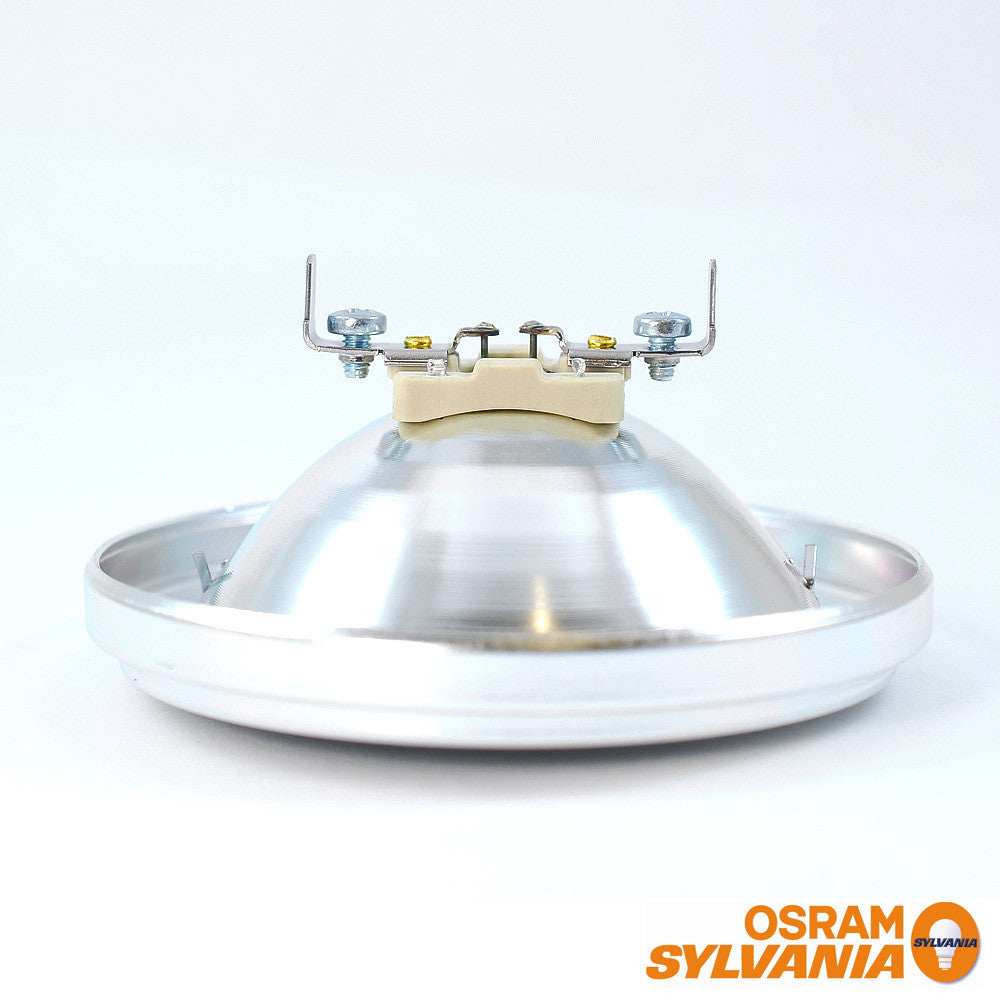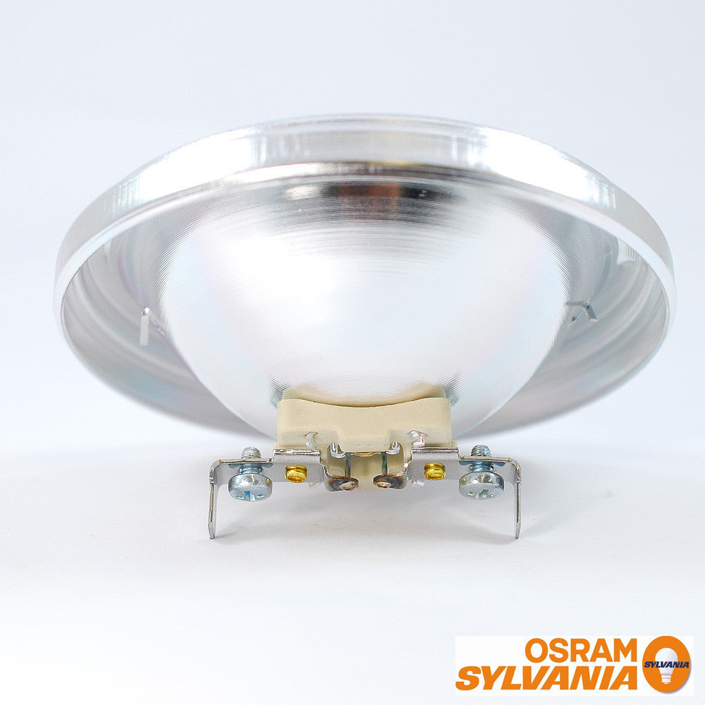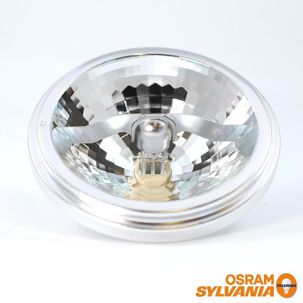 This 100 watt Osram Sylvania AR111 bulb has a beam spread of flood and a beam degree of 25. Its ansi code is AR111 the voltage is 12 and it has a base of push screw terminal. The push screw base can be used in the following applications, Stage & Studio Lighting, Specialty Lamps, Industrial lighting, Commercial lighting, and Tractor lighting. The 100 watt Osram Sylvania ar111 bulb has a diameter of 4.37 inches, a filament of C-8 and a reflector lamp finish. Its maximum overall length of 2.64 inches and a rated life of 3000 hours.