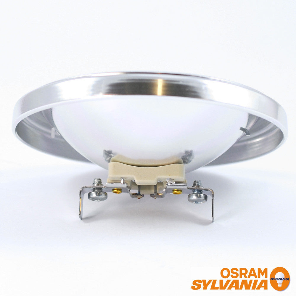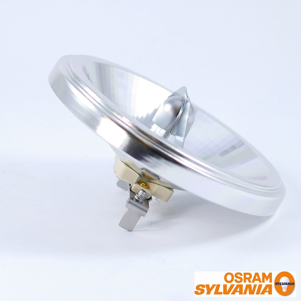 This 100 watt Osram Sylvania AR111 bulb has a beam spread of spot and a beam degree of 8. It's ansi code is AR111, the voltage is 12 and it has a base of push screw terminal. The push screw base can be used in the following applications, Stage & Studio Lighting, Specialty Lamps, Industrial lighting, Commercial lighting, and Tractor lighting. The 100 watt Osram Sylvania ar111 bulb has a diameter of 4.37 inches, a filament of C-8 and a reflector lamp finish. It's maximum overall length is 2.64 inches and a rated life of 3000 hours.