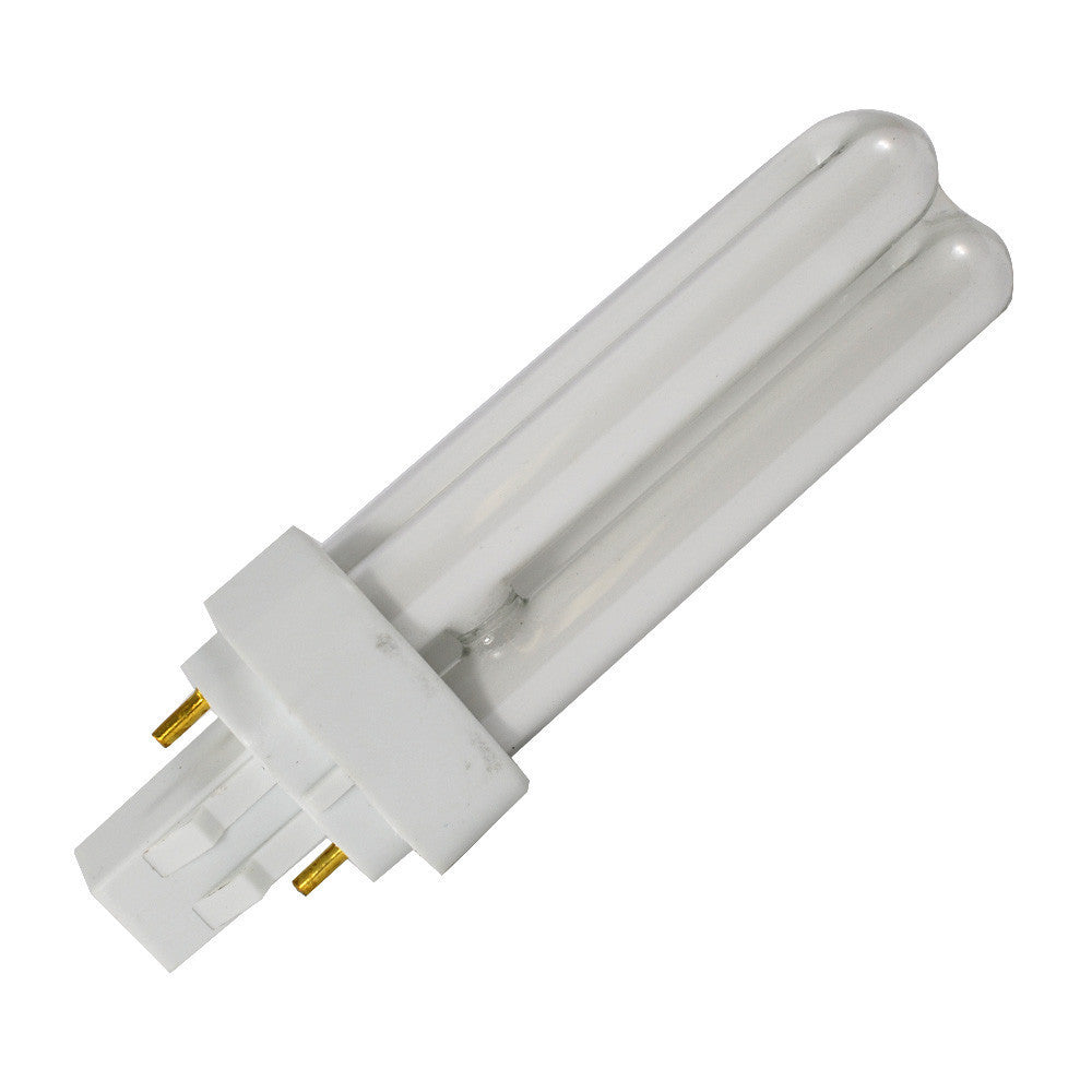 This is the DULUX 13W double compact fluorescent lamp. It has a GX23-2 pin base. The color temperature is 2700K color temperature with an 82 CRI. This lamp is ECOLOGIC for use on magnetic ballast.